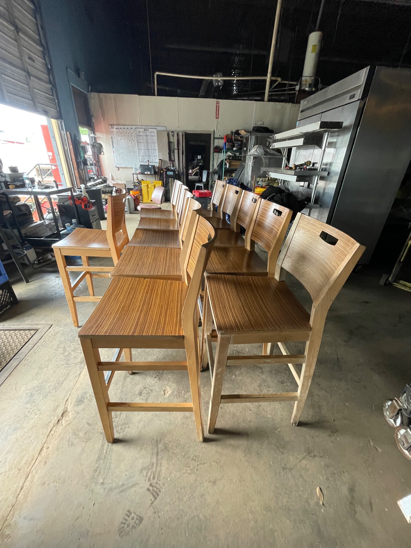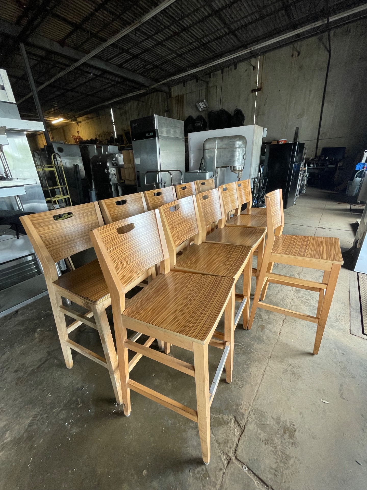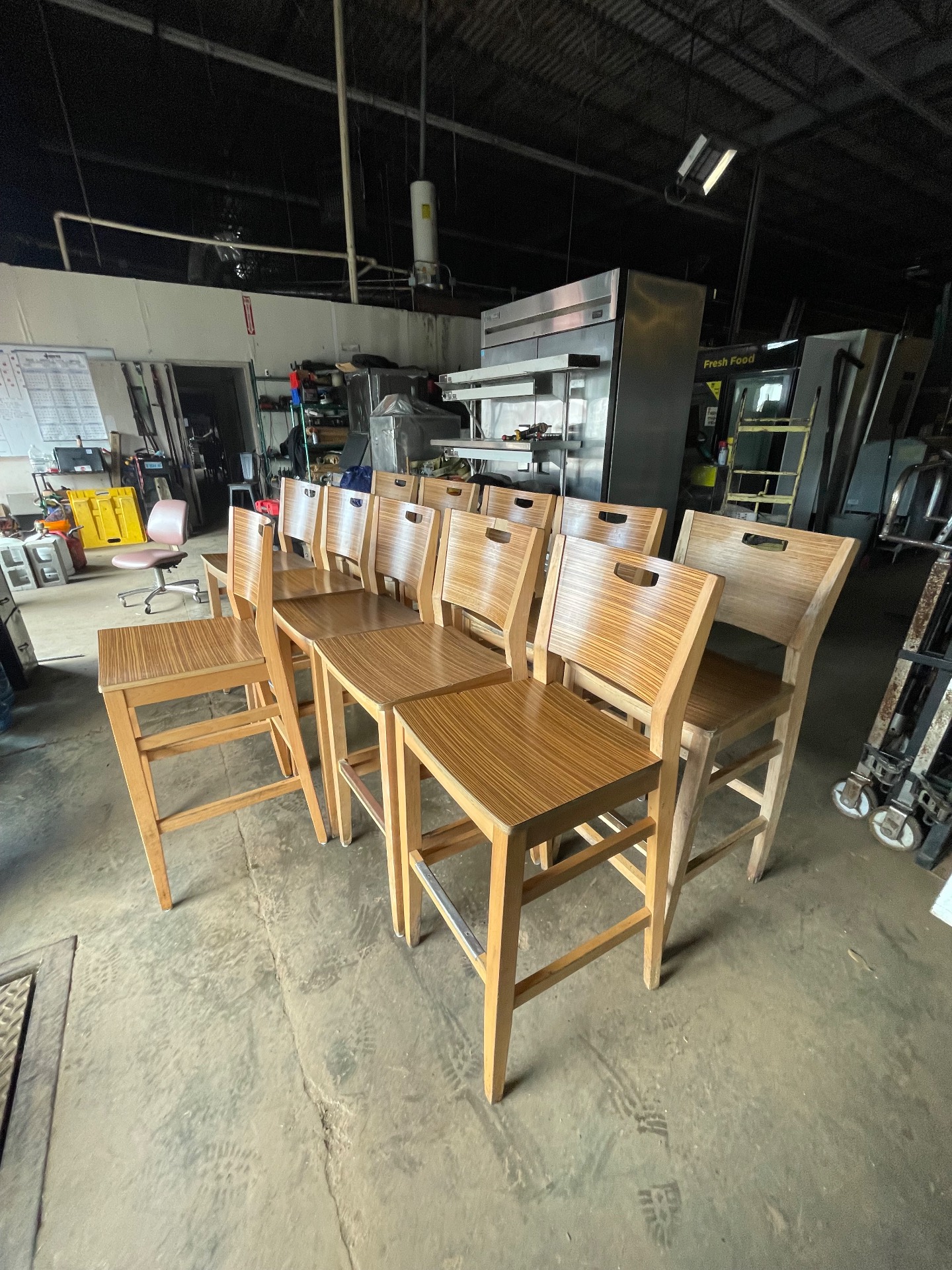 1. Equipment Name Plymold commercial wooden chair set 2. Key Features - Brand: Plymold (manufacturer-provided) - Commercial wooden chairs with durable laminated surfaces (technician notes) - Built for regular use in foodservice or high-traffic seating areas 3. Condition Good - Minor Wear Technician notes: "Set of Plymold commercial wooden chairs with durable laminated surfaces. Items show slight wear consistent with use." No structural damage reported. Model not confirmed. 4. Ideal Use Cases - Restaurants, cafes and bistros - Bar seating and lounge areas - Break rooms, meeting rooms, event rental inventory - Waiting areas and reception seating 5. Pickup Information Available for pickup at Warehouse A. Buyer responsible for removal and transport. Please bring appropriate vehicle or arrange delivery—no delivery included. 6. Contact Call-To-Action Serious inquiries welcome. Message for details, additional photos, or to schedule a viewing. Available for pickup.