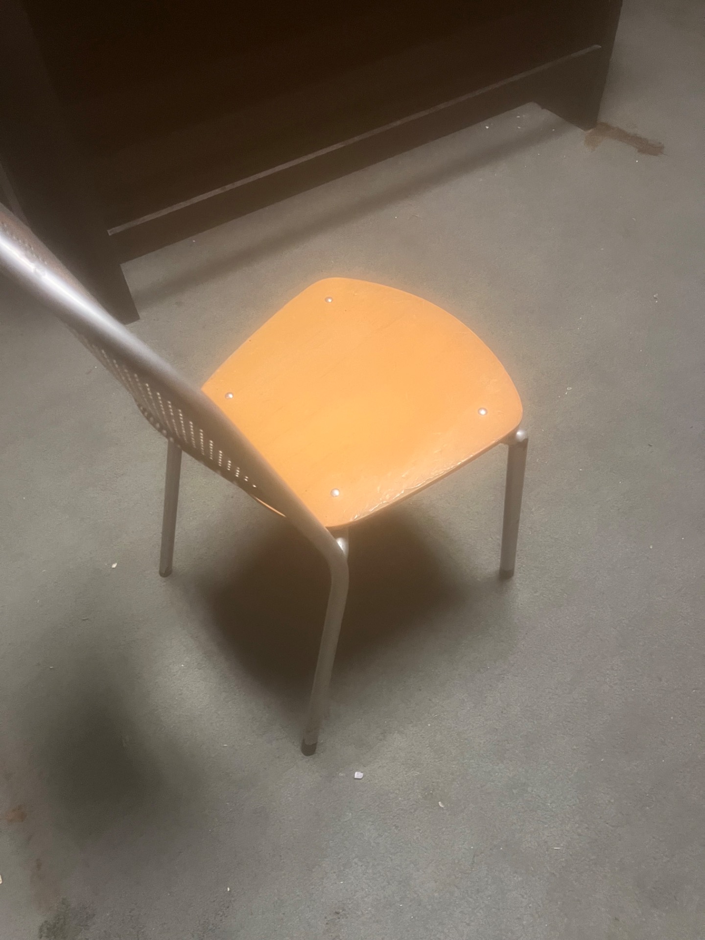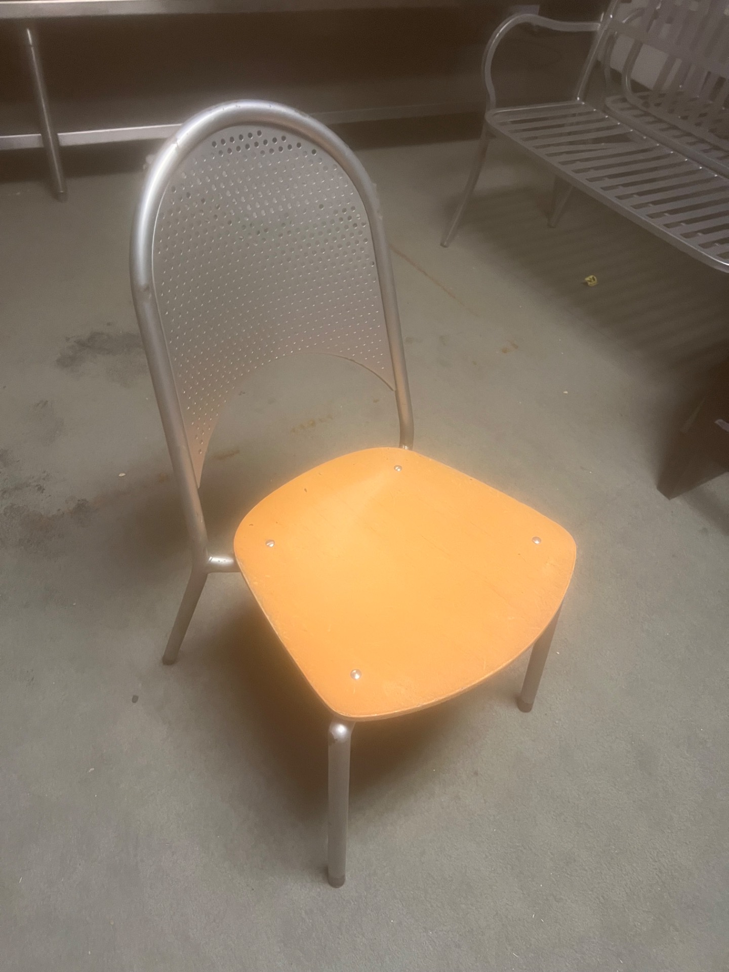 1. Equipment Name Commercial metal and wood chair (perforated metal backrest) 2. Key Features - Metal frame with wood seat and perforated metal backrest - Commercial-grade construction designed for frequent use - Simple, stackable-friendly profile for space-efficient storage (stacking not confirmed) - Technician notes: metal and wood chair with a perforated metal backrest. No manufacturer data plate visible. 3. Condition Good - Minor wear consistent with regular use (light surface scratches and finish wear). Structurally sound and ready for continued use. Brand and model not confirmed due to no visible data plate. 4. Ideal Use Cases Best for restaurants, cafes, bistros, break rooms, event rental fleets, waiting areas, or retail displays seeking durable seating with an industrial look. 5. Pickup Information Location: Warehouse A. Available for pickup. Buyer responsible for transport and loading. Please confirm size/quantity needs before arrival. 6. Contact Call-To-Action Serious inquiries welcome. Message for details or to request additional photos. Available for pickup — message to coordinate time.