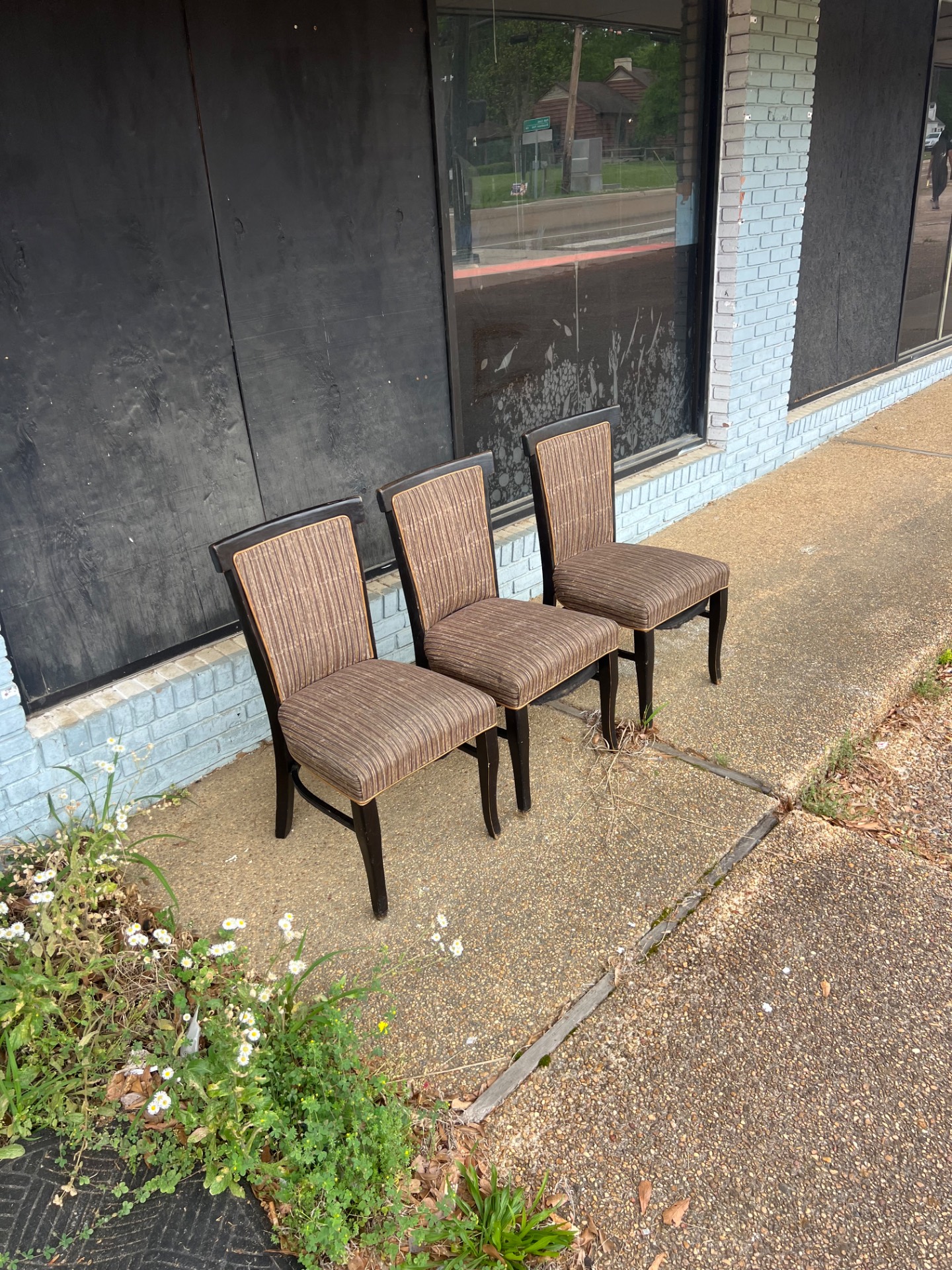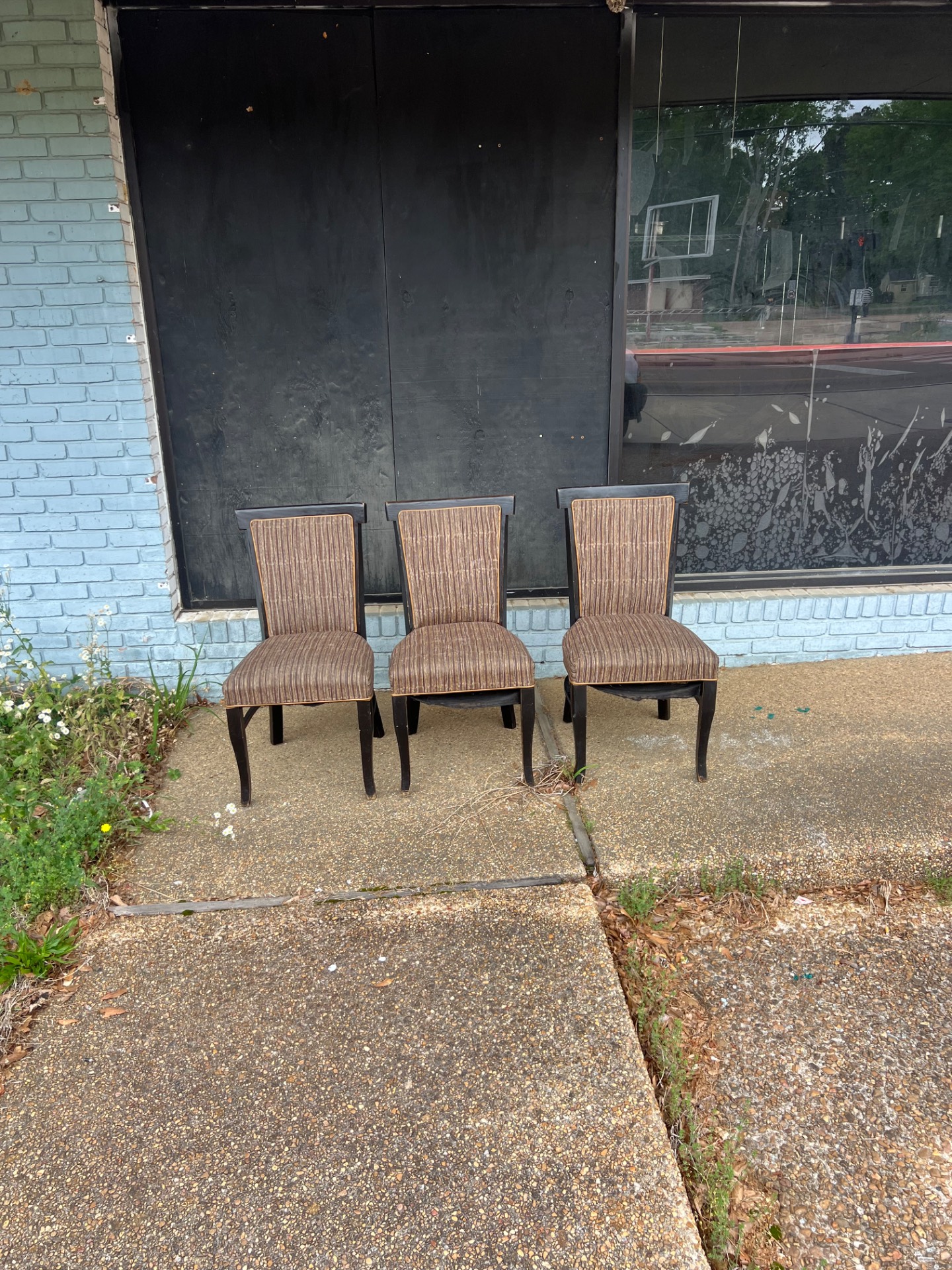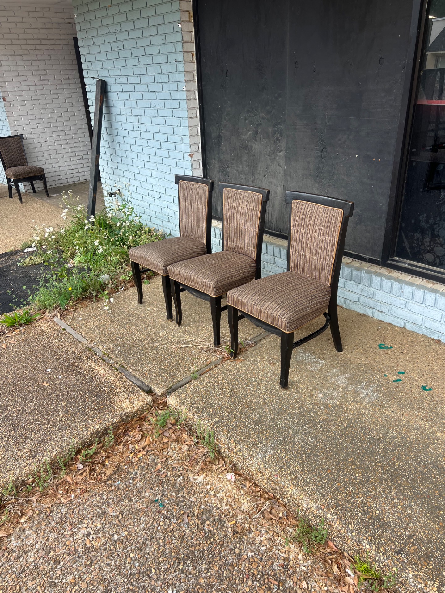 Equipment Name: Set of three upholstered dining chairs with dark wood frames (matching set). Key Features: - Quantity: 3 chairs - Upholstered seat and back - Dark wood frames - No manufacturer information visible (no labels or markings) Condition: Good — minor wear (technician notes indicate light, typical surface wear consistent with prior use). Upholstery and frames present as shown. "No manufacturer information visible." No electrical components. Ideal Use Cases: Well suited for restaurants, cafes, bistros, event rental use, office break rooms, waiting areas, or staging and set dressing where quality used seating is needed. Pickup Information: Available for pickup at Warehouse A. Buyer responsible for removal and transport. Contact Call-To-Action: Serious inquiries welcome. Message for details or to request additional photos and arrange pickup. Available for pickup — message for details.