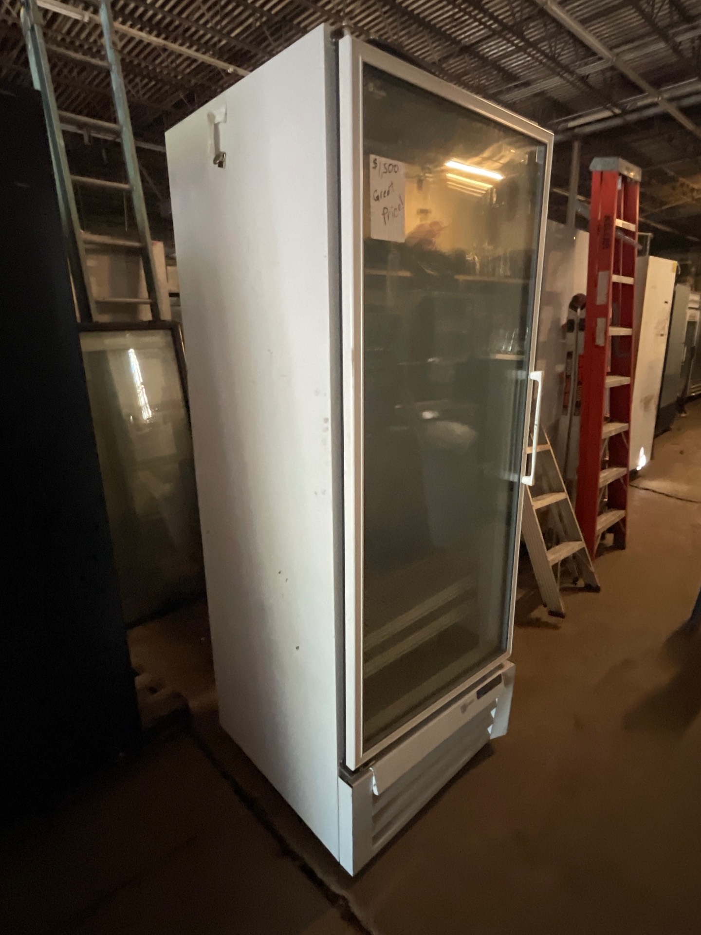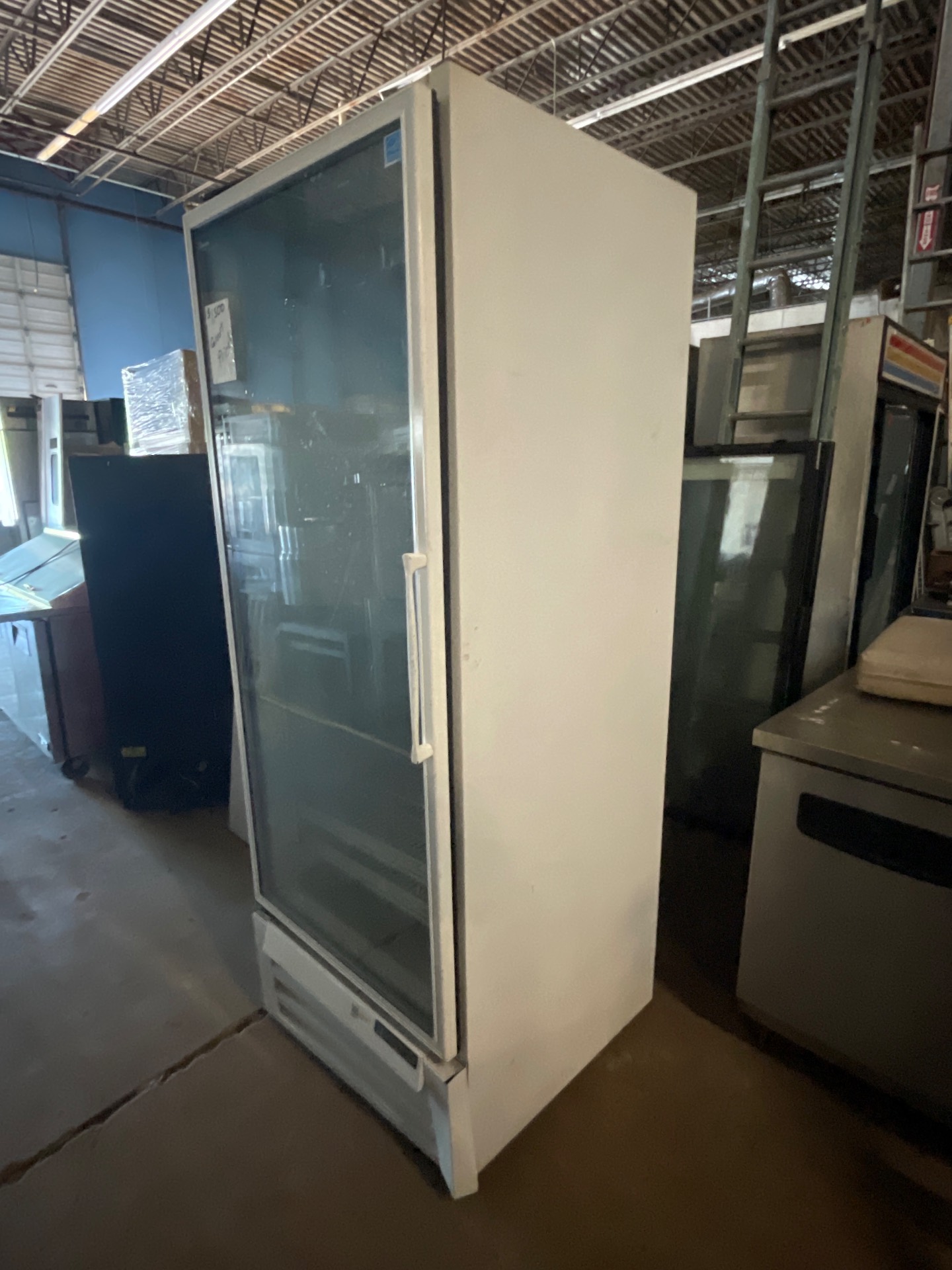 1. Equipment Name: Single glass door commercial refrigerator (brand not identified). Located in Warehouse A. 2. Key Features: - Single insulated glass door for product visibility - Commercial refrigeration cabinet suitable for front-of-house display or back-of-house storage - Technician notes: unit shows minor surface wear and appears to be functional 3. Condition: Good — minor surface wear on exterior. Unit appears to be functional per technician inspection. Sold as-is; buyer welcome to inspect or test on-site by appointment. 4. Ideal Use Cases: Best for small restaurants, cafes, convenience stores, bars, catering operations, or anyone needing a compact display/holding refrigerator. 5. Pickup Information: Available for pickup at Warehouse A. Buyer is responsible for removal, transport, and any required loading equipment. Please bring appropriate vehicle and straps. 6. Contact Call-To-Action: Serious inquiries welcome. Message for details or to schedule an inspection. Available for pickup.