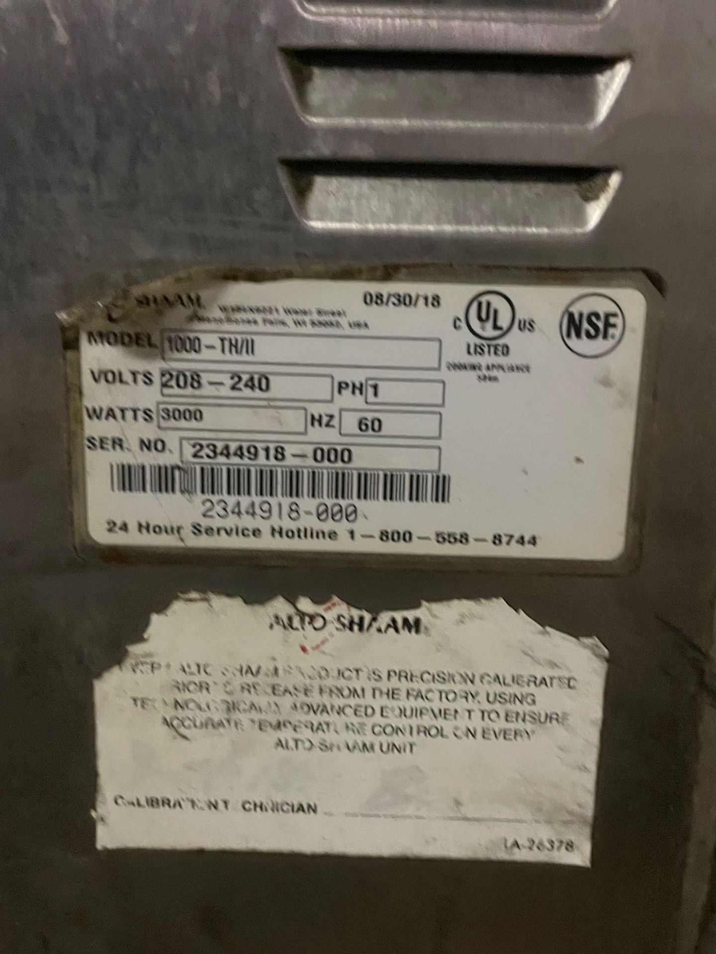 Equipment Name: Alto-Shaam 1000-TH/II commercial warming/holding cabinet Key Features: - Manufacturer: Alto-Shaam - Model: 1000-TH/II (Serial: 2344918-000) - Electrical: 208-240V, 1 phase - Designed for low-temperature holding and warming of prepared foods - Sturdy construction typical of Alto-Shaam units Condition: Fair - Functional wear consistent with commercial use. Technician notes indicate visible rust on casters and surface scratches. Unit is operational but shows cosmetic and wear issues. Sold as-is. Ideal Use Cases: - Restaurants, caterers, food trucks, or institutional kitchens needing an affordable holding cabinet - Straightforward replacement or backup holding unit for kitchens where appearance is not critical - Good option for shops that can address caster corrosion or refurbish panels Pickup Information: Location: Warehouse A. Available for pickup. Buyer is responsible for removal and transport. Contact Call-To-Action: Serious inquiries welcome. Message for details, to confirm availability, or to schedule a viewing/pickup. Available for pickup in Warehouse A. Message for details.